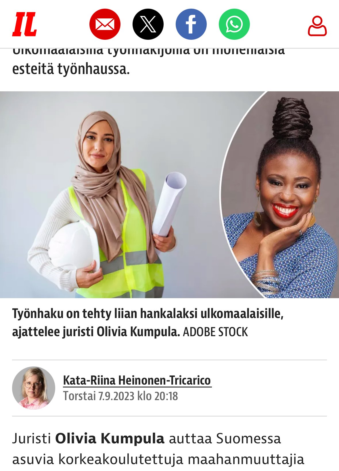 Olivia Kumpulan perustama Inter Pro Finland opastaa ulkomailta muuttaneita ammattilaisia löytämään osaamistaan vastaavaa työtä. – Satakunnan Kansa