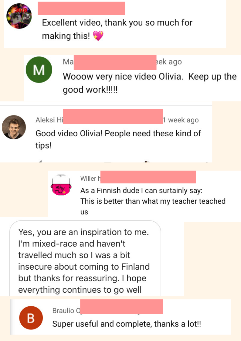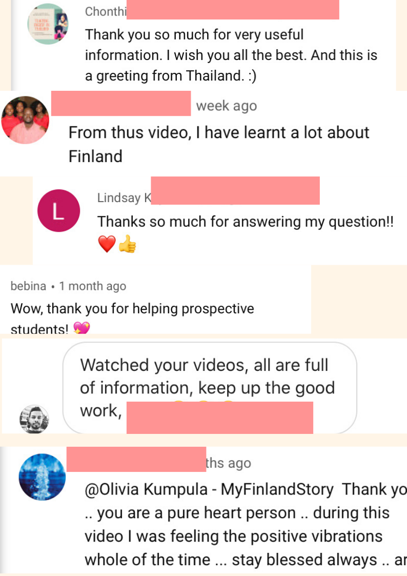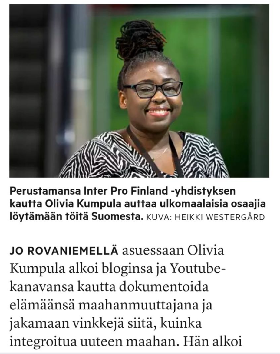 I was in the process of applying for my studies in finland searched on youtube about studying in finland thats when i found her channel. Sharing her experience as a foreigner from Africa makes her more relatable. Her videos are Honest and informative. I would recommend her content to other people planning to move to Finland for study or work.